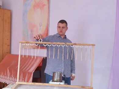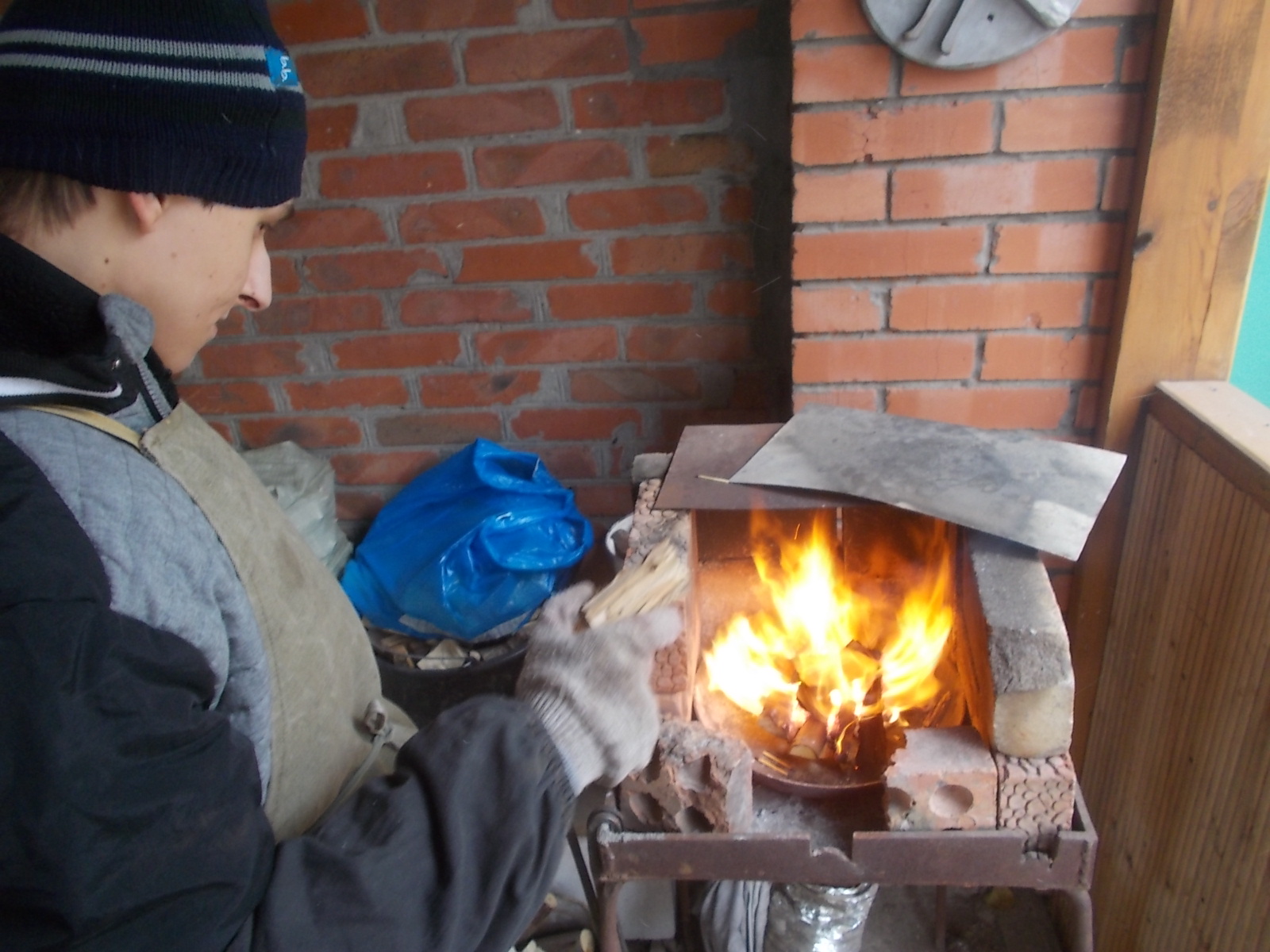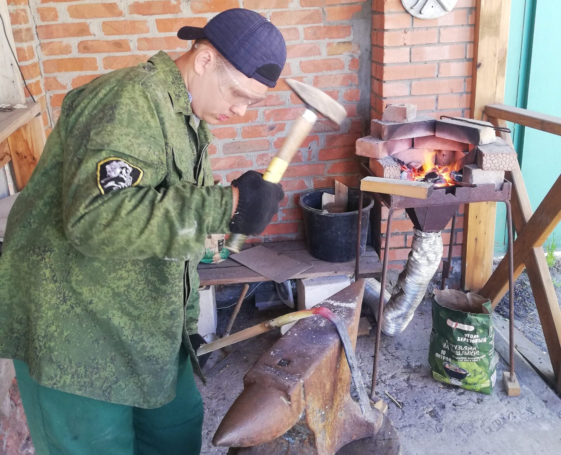У подростков, которые достигли 14-15 лет, есть естественный интерес к работе в кузнице. Если до этого они работают с медью небольшими молотками, то сейчас, когда завершается физическое формирование кистей рук, можно взять в руки кузнечные молотки. Здесь нужно проявить не только силу, ловкость, умение пристроиться к материалу, но и волю. Здесь нельзя медлить. Здесь нужно действовать. Прокалить в горне металл, ухватить его щипцами и ковать на наковальне, пока металл ещё красный. В нашем арсенале: кованые гвозди, скобы, крючки для вешалок, мечи для рыцарских поединков.