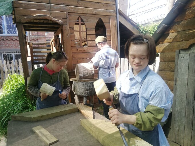 Наши воспитанники занимаются в четырёх мастерских: Столярной, Ткацкой, Кузнечной и Свечной.